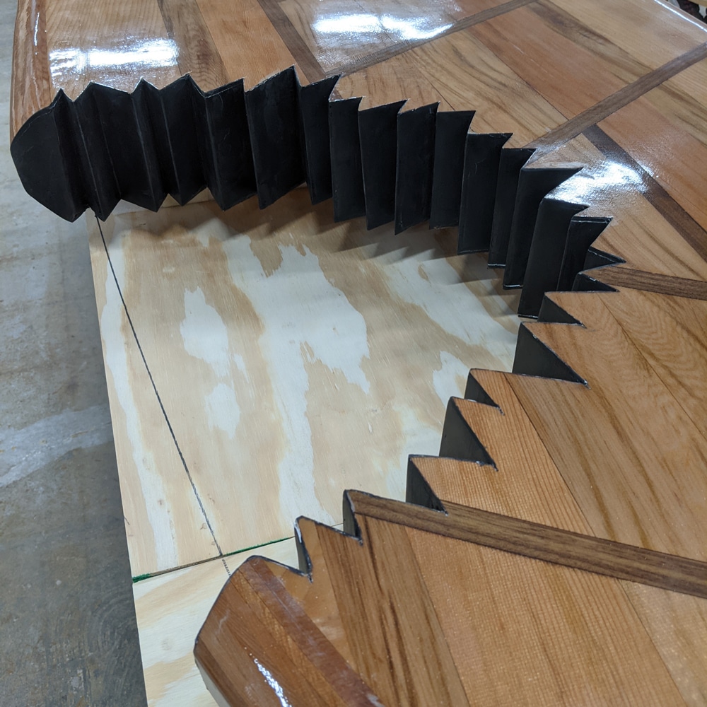 Wall hanger, unique cap and core pattern with geometric design.